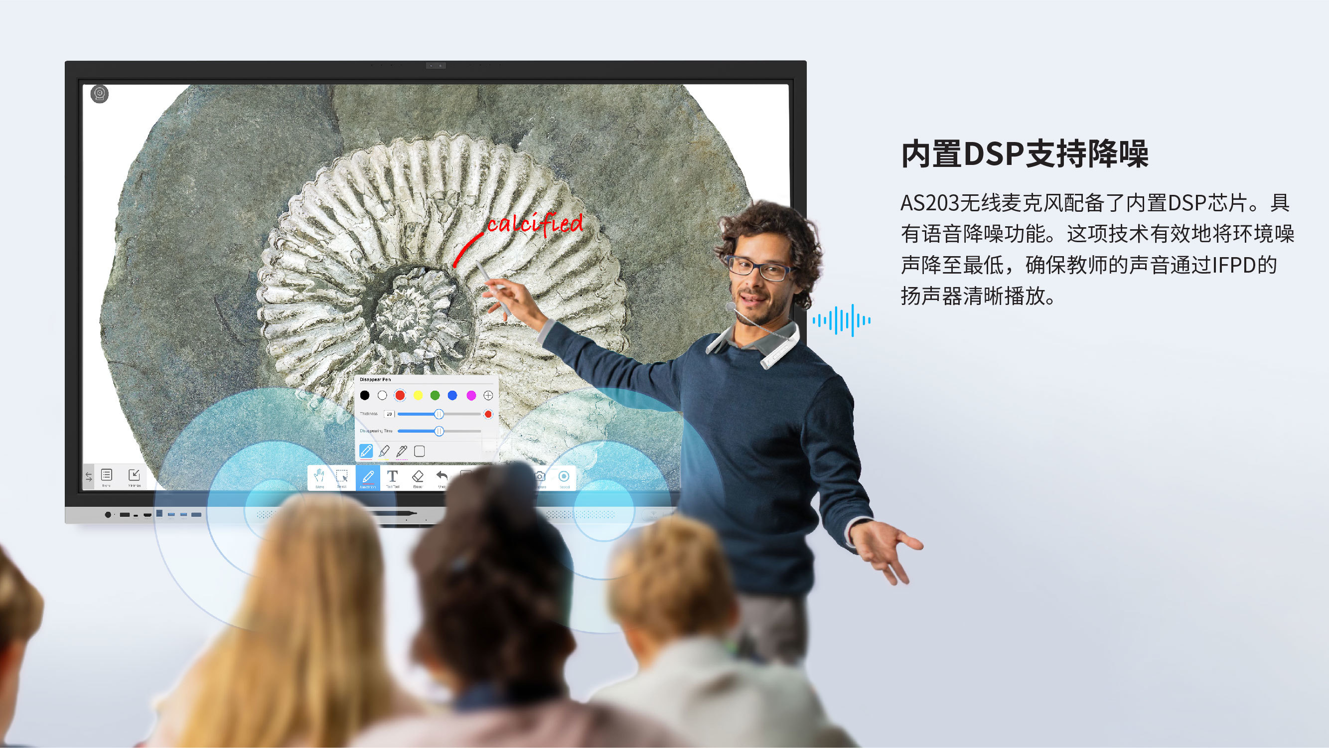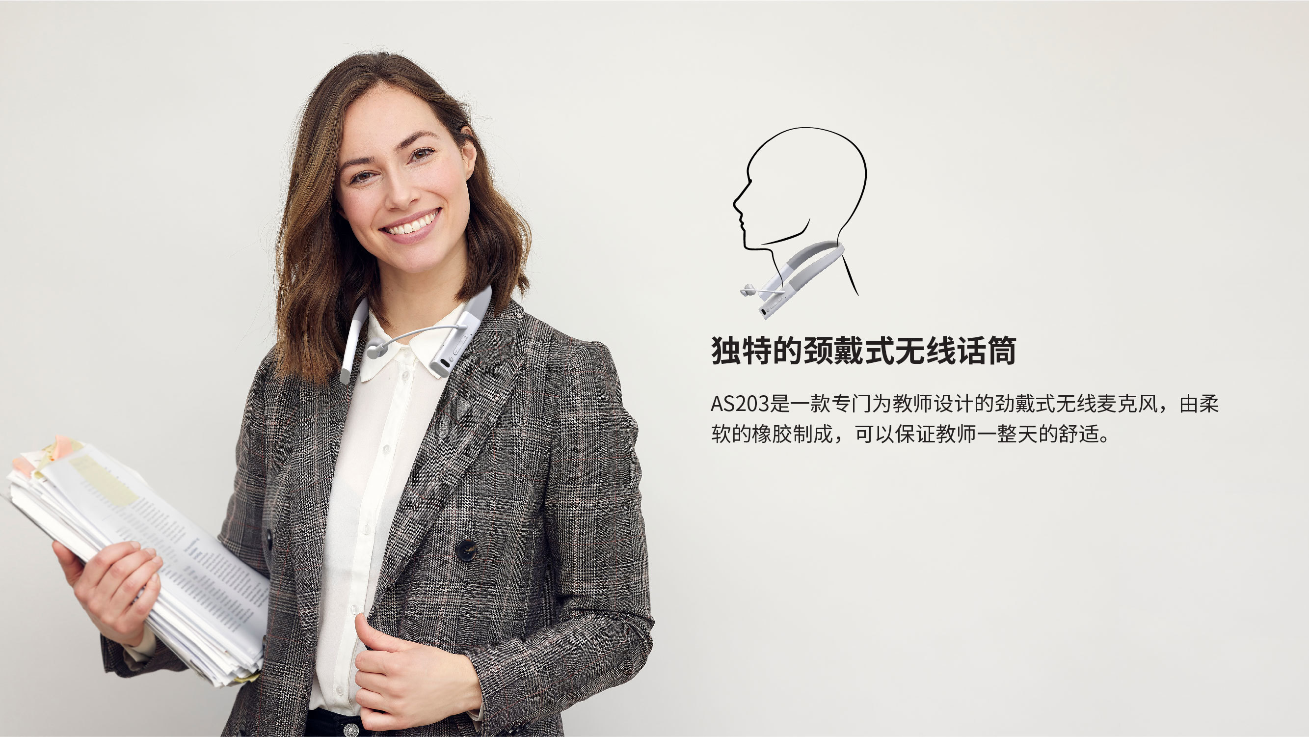 AS203麥克風(fēng)套件(jiàn)是(shì)一(yī)款專為(wèi)教育工(gōng)作(zuò)者設計(jì)的(de)頸®戴式無線 麥克風(fēng),可(kě)提升您的(de)教學體(tǐ)驗。它采用(yòng)柔軟的(de)橡膠制(zhì)成,佩戴 舒适,具有(yǒu)先進的(de)紅(hóng)外(♥wài)配對(duì)技(jì)術(shù),可(kě)在2米範圍內(nèi)無縫連接到(dào) MY↑SHER IFPD。 為(wèi)了(le)與第三方交互式平闆電(diàn)腦(nǎo)或揚聲器(qì)兼容,USB Dongle( 接收端)無需驅動程序即可(kě)快(kuài)速與設備配對(±duì)。AS203麥克風(fēng)由 內(nèi)置750mAh可(kě)充電(diàn)電(diàn)池供電(diàn),可(kě)提供長(cháng)達6小(xiǎo)時(shí)的(de₽)連續運行(xíng) ,确保不(bù)間(jiān)斷的(de)連續運行(xíng)。 AS203配備內(nèi)置DSP芯片,可(kě)最大(dà)限度地(dì)減少(shǎo)環境≤噪音(yīn),通(tōng)過 IFPD的(de)揚聲器(qì)或外(wài)部揚聲器(qì)提供清晰的(de)教師(shī)交流。無線範圍 可(kě)達10米。