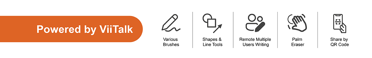 搭載 ViiTalk 平台,FA Pro支持先進的(de)多(duō)用(yòng)戶遠(yuǎn)程交互白(bái)闆,實現(xiàn)異地(dì)實時(shí)協作(zuò)。•用(yòng)戶可(kě)同時(shí)書(shū)寫、繪圖和(hé)批注,配備多(duō)種畫(huà)筆(bǐ)工(gōngσ)具和(hé)手掌擦除功能(néng),操作(zuò)流暢自(zì)然。白(bái)闆內(nèi)容可(kě)通(tōng)過掃描二維碼即時(shí)分(fēn)享,輕松獲取會(huì)議(yì♠)記錄或教學資料。支持 Android 系統 20 點觸控與 Windows 系統 40 點觸控,提供極緻響應的(de)交互體(tǐ)驗,是(shì)構建智慧課堂與高(gāo)γ效會(huì)議(yì)的(de)理(lǐ)想之選。