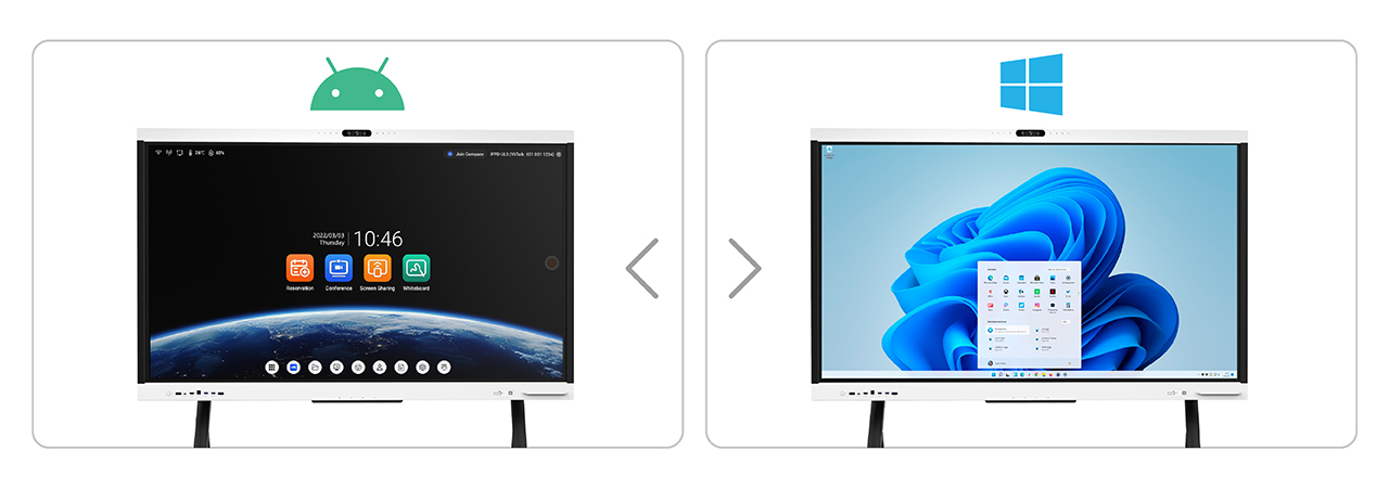 支持可(kě)選的(de) i5/i7 OPS 模塊,輕松實現(xiàn) Android 與 Windows 雙系統切換。