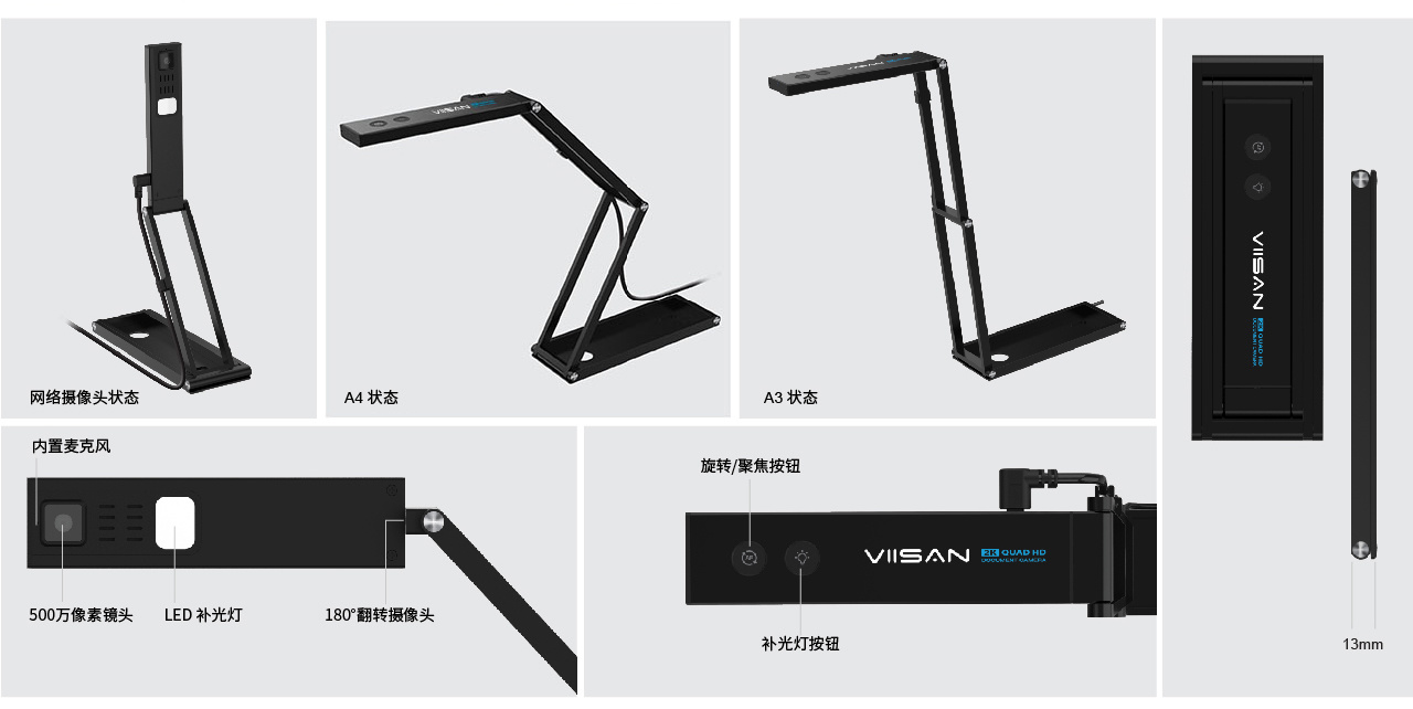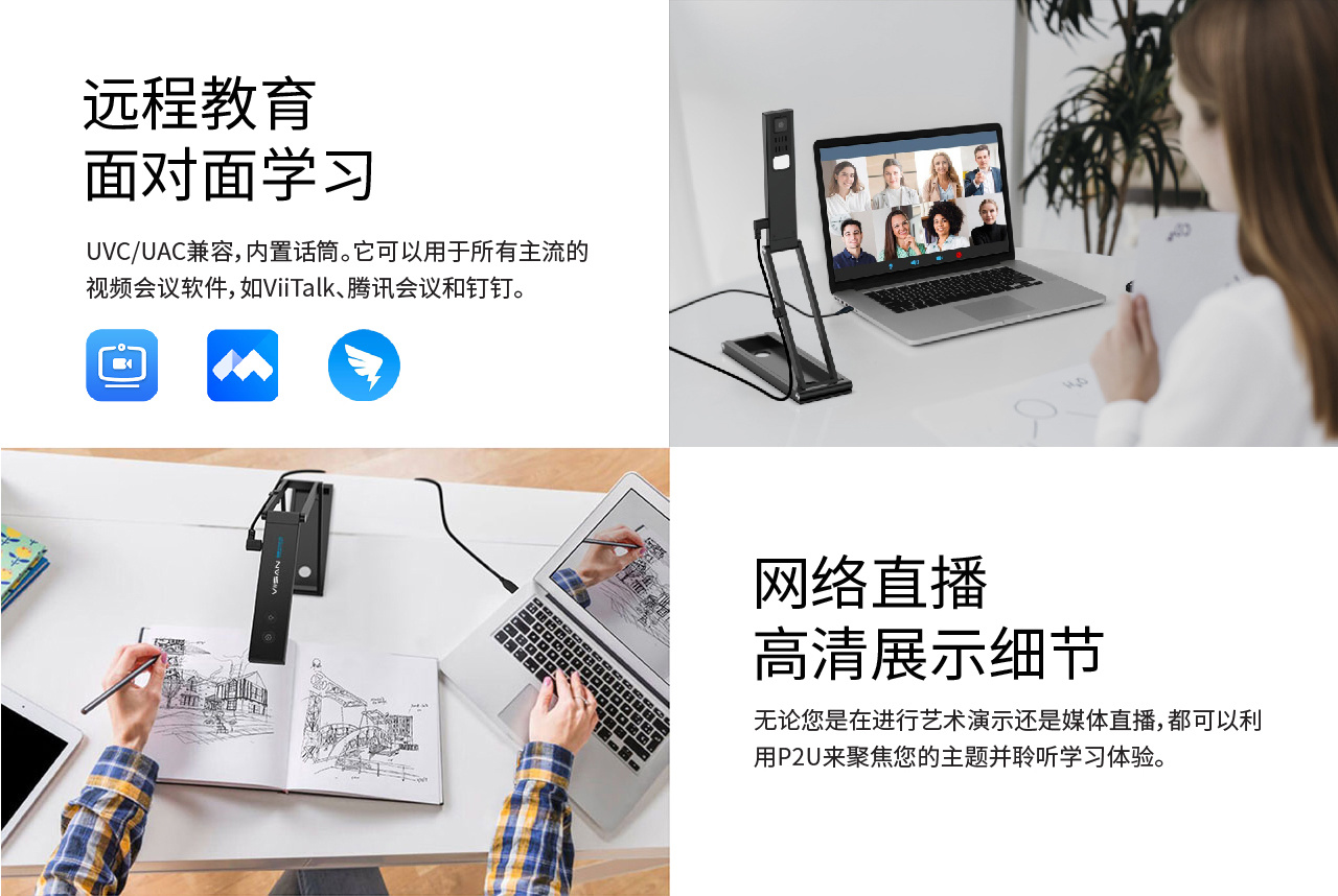 它可(kě)以幫助教師(shī)展示每一(yī)個(gè)細節,無論是(shì)演示頁面、一(yī)本書(shū),或顯示一(yī)個(gè)标本的(de)模型。 您的(de)學生(shēng)無論在課堂上(shàng)還(hái)是(shì)遠(yuǎn)程都(dōu)能(néng)看(kàn)到(dào)清晰的(de)圖™像。可(kě)折疊機(jī)械臂可(kě)以輕松折疊産品并存放(fàng)在您攜帶的(de)包裡(lǐ),非常方便老(lǎo)師(shī)随身(shēn)攜帶設備,随時(shí)随地(dì)進∞行(xíng)教學、錄音(yīn)、 直播或課程規劃。
