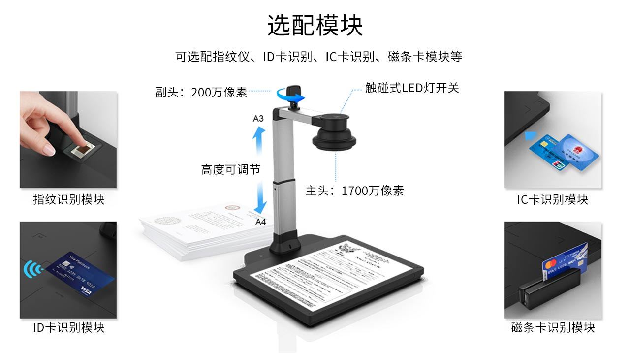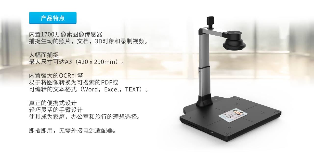 SD17315是(shì)一(yī)款多(duō)功能(néng),可(kě)擴展的(de)文(wén)檔拍(pāi)攝儀,适用(yòng)于金(jīn)融§,保險和(hé)櫃台服務行(xíng)業(yè)。 其完美(měi)的(de)解決方案使辦公室工(gōng)作(zuò)更輕→松,更快(kuài)捷,更高(gāo)效。該産品捆綁了(le)強大(dà)的(de)文(wén)檔攝像頭軟件(jiàn),可(kě)以捕獲照(zhào)片和(hé)文(wén)檔,錄制(z♦hì)視(shì)頻(pín),制(zhì)作(zuò)副本,發送電(diàn)子(zǐ)郵件(jiàn),識别條形碼和(hé)ID,執行(xíng)OCR并将₹圖像轉換為(wèi)可(kě)編輯的(de)Word和(hé)Excel文(wén)件(jiàn)格式。 它的(de)應用(yòng)場(chǎng)景↔包括政府部門(mén),醫(yī)療機(jī)構,銀(yín)行(xíng)和(hé)金(jīn)融,保險公司,學校(xiào)以及需要(yào)文(wén)檔掃描或複制(zhì)的(d✔e)任何地(dì)方。 最重要(yào)的(de)是(shì)它獨特的(de)可(kě)擴展設計(jì )允許添加指紋掃描,ID卡掃描和(hé)磁條讀(dú)取器(qì)模塊組合等高(gāo)級功能(néng)。