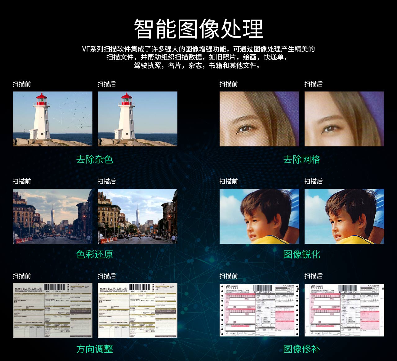 此外(wài),VF3120捆綁了(le)功能(néng)強大(dà)的(de)軟件(jiàn),通(tōng)過智能(néng≠)圖像處理(lǐ)算(suàn)法生(shēng)成您所需要(yào)的(de)文(wén)件(jiàn)。