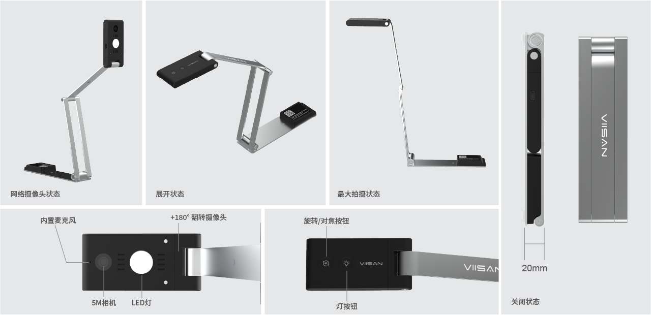 VS5是(shì)一(yī)款2合1 2K便攜式USB展台工(gōng)具(文(wén)檔相(xiàng)機(jī)),用(yòng)于遠(yuǎn)程學習(xí)和(hé)"現(xiàn)場(chǎng)演示。它提供高(gāo)達2K分(fēn)辨率的(de)清晰圖像和(hé)高(gāo)α幀率視(shì)頻(pín)流輸出,獨特的(de)多(duō)關節設計(jì)使您可(kě)以輕松擴展高(gāo)π度,并将相(xiàng)機(jī)頭折疊到(dào)完美(měi)的(de)角度,以查看(kàn)材料的(de)×更多(duō)細節。