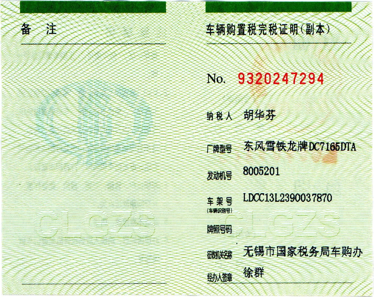 機(jī)動車(chē)銷售統一(yī)發票(piào)識别