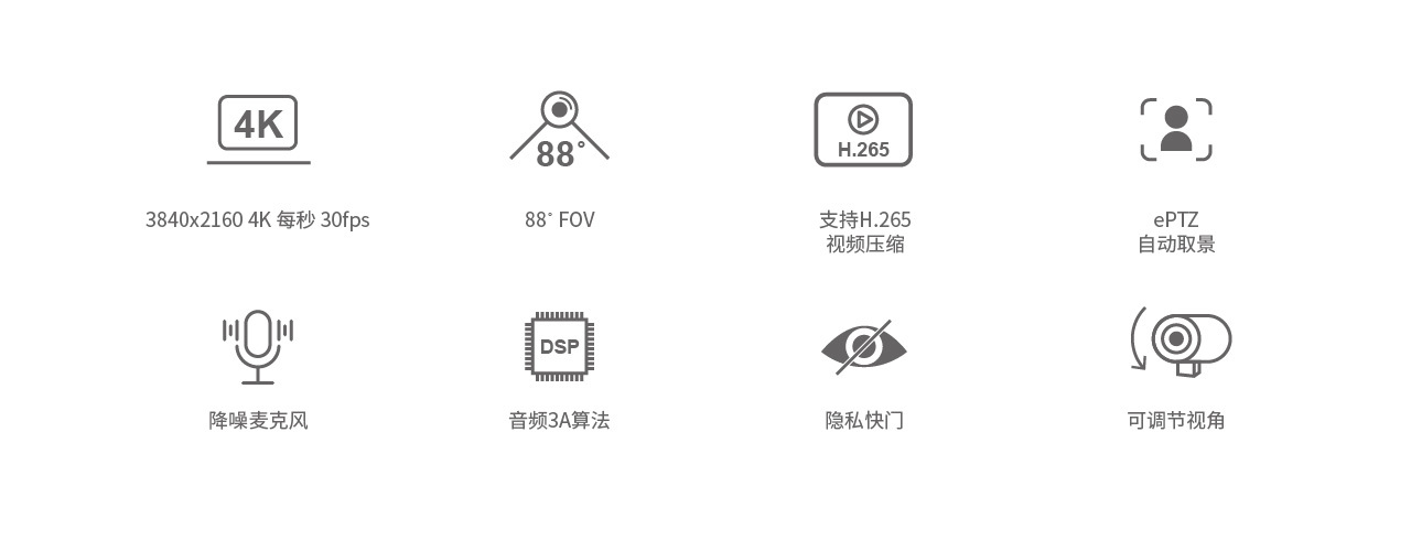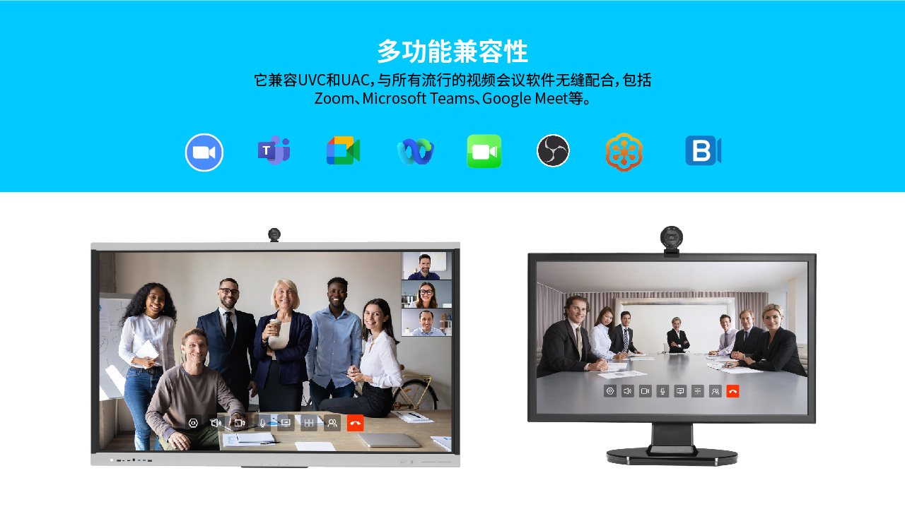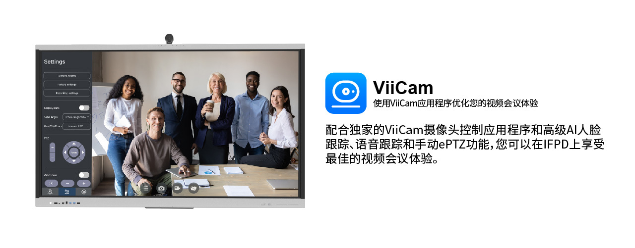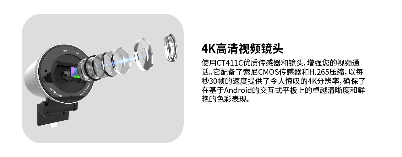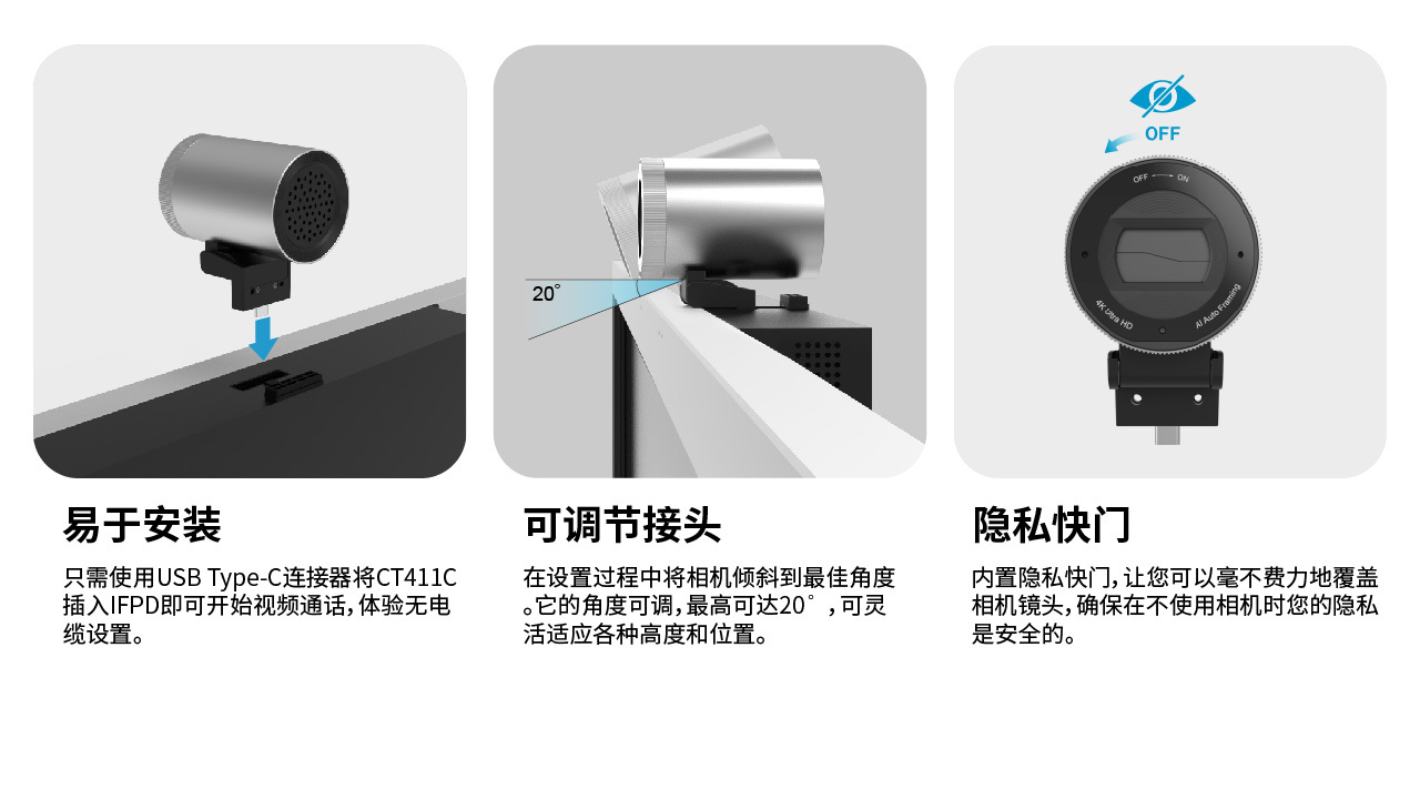 有(yǒu)2陣列噪聲消除麥克風(fēng)、嵌入式攝像頭鏡頭蓋以确保您的(de)隐私安全,以及方便的(de)Type-C接口設計(jì),使您能(néng)夠☆将此攝像頭直接集成到(dào)交互式平闆顯示器(qì)(IFPD)中。得(de)益于ViiCam攝像頭控制(zhì)軟件(jiàn),它提供4©K@30fps視(shì)頻(pín)質量、H.265壓縮、人(rén)臉跟蹤、聲音(yīn)定位和(hé)噪聲消除功能(néng),提供令人(rén)驚歎的(de)視(shì)頻(pín)會(huì)議(yì)體(tǐ)驗。
