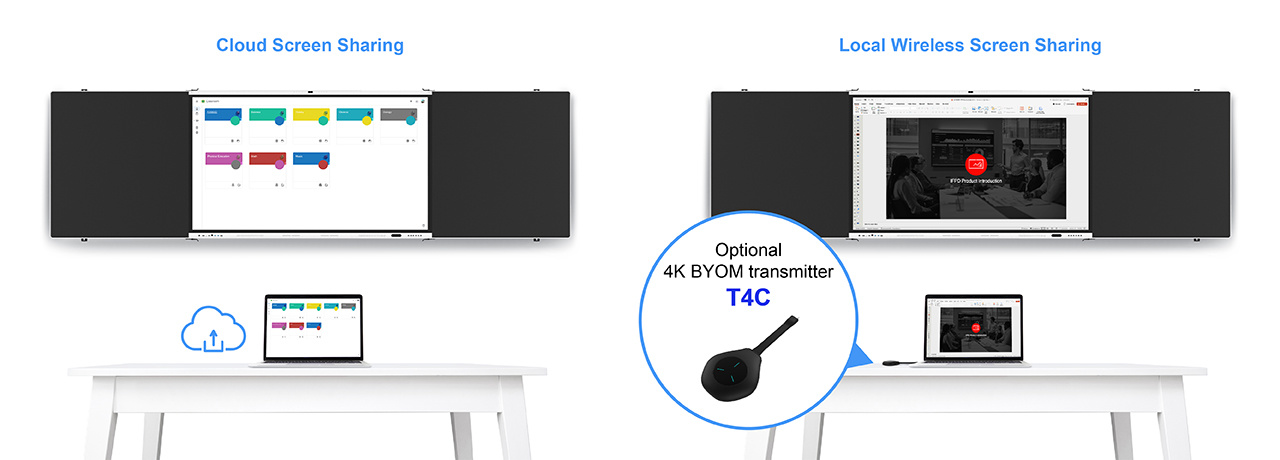 FD 系列支持多(duō)種投屏方式,包括掃碼投屏與網頁浏覽器(qì)投屏。用(yòng)戶隻需在浏覽器(qì)中輸入 PIN 碼,即可(kě)輕松連接、協作(zuò)與分(fēn)享屏幕,帶"來(lái)前所未有(yǒu)的(de)便捷體(tǐ)驗。同時(shí)還(hái)可(kě)通(tōng)過選配的(de) USB 投屏α器(qì)實現(xiàn) 4K 高(gāo)畫(huà)質無線投屏,提供更穩定流暢的(de)視(shì)頻(pín)畫(huà)面。