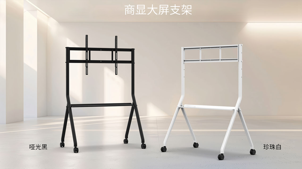 KZH11是(shì)一(yī)款堅固耐用(yòng)的(de)多(duō)功能(néng)落地(dì)支架,适用(yòng)于商顯大(dà)屏γ,支持160公斤以內(nèi)的(de)大(dà)屏。與65英寸、75英寸和(hé)86英寸的(de)型号兼容,具有↑(yǒu)平滑滾動的(de)4英寸可(kě)鎖定輪,可(kě)輕松移動并保持穩定。它有(yǒu)黑(hēi)色和(hé)白(bái)色兩種樣式選擇。♣
